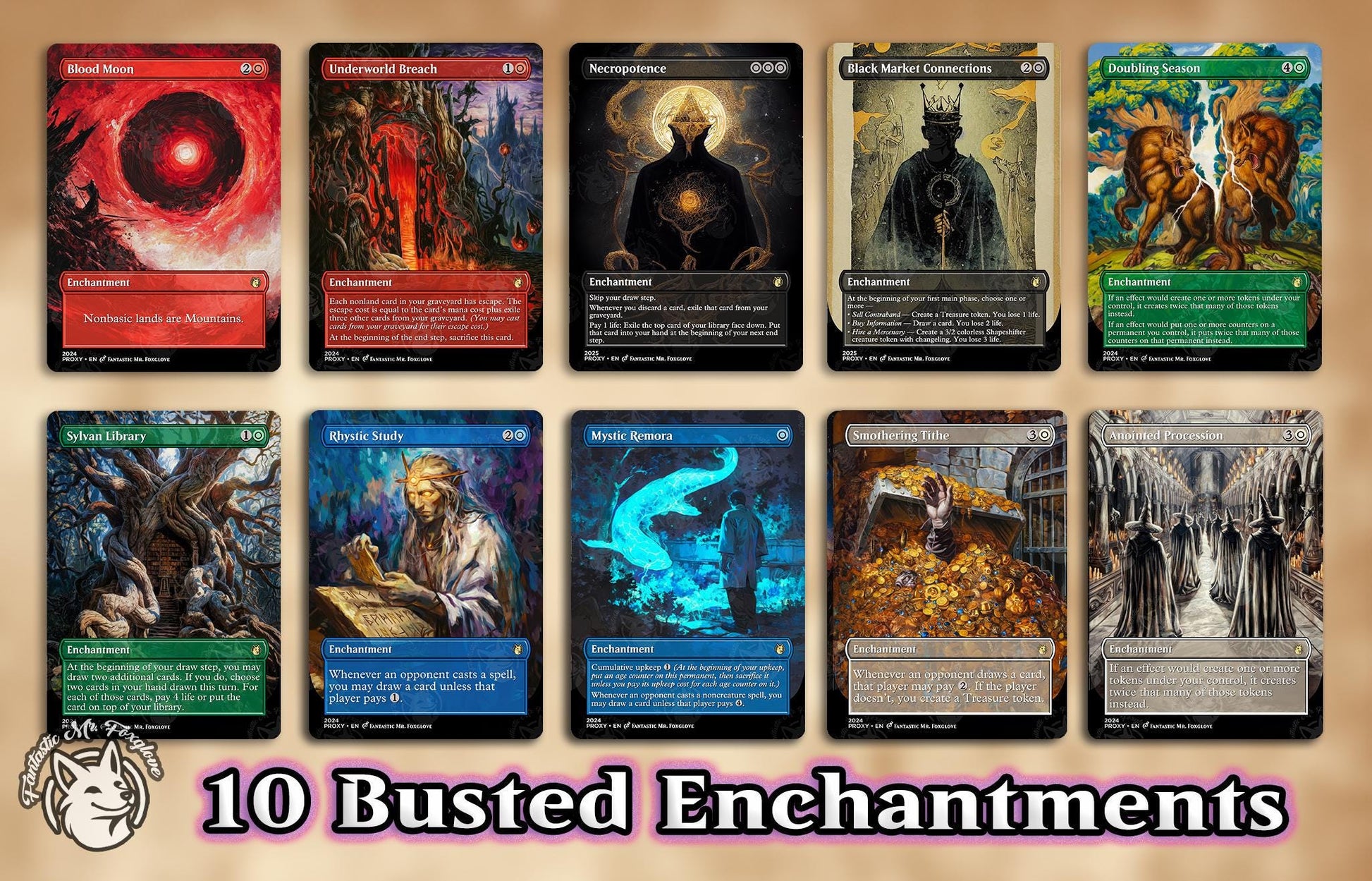 10 Busted Enchantments | Proxy Cards β Rhystic Study, Smothering Tithe, Doubling Season +can Add Procession, Remora, Breach, Necro & More!