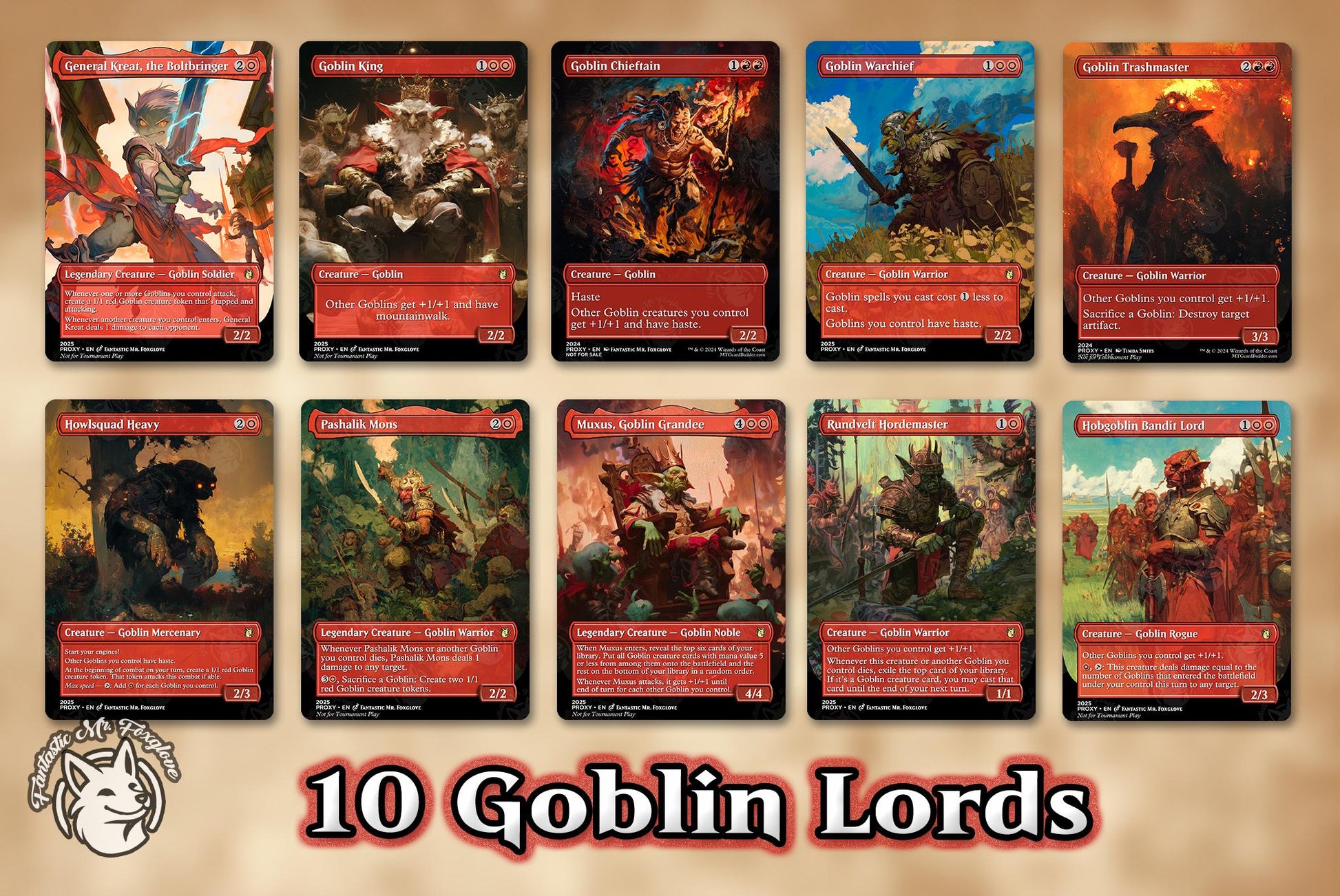 10 Goblin Lords | Proxy Cards β Muxus, General Kreat, Goblin King, Warchief, Trashmaster, Chieftain, Howlsquad, Pashalik, Rundvelt, and more