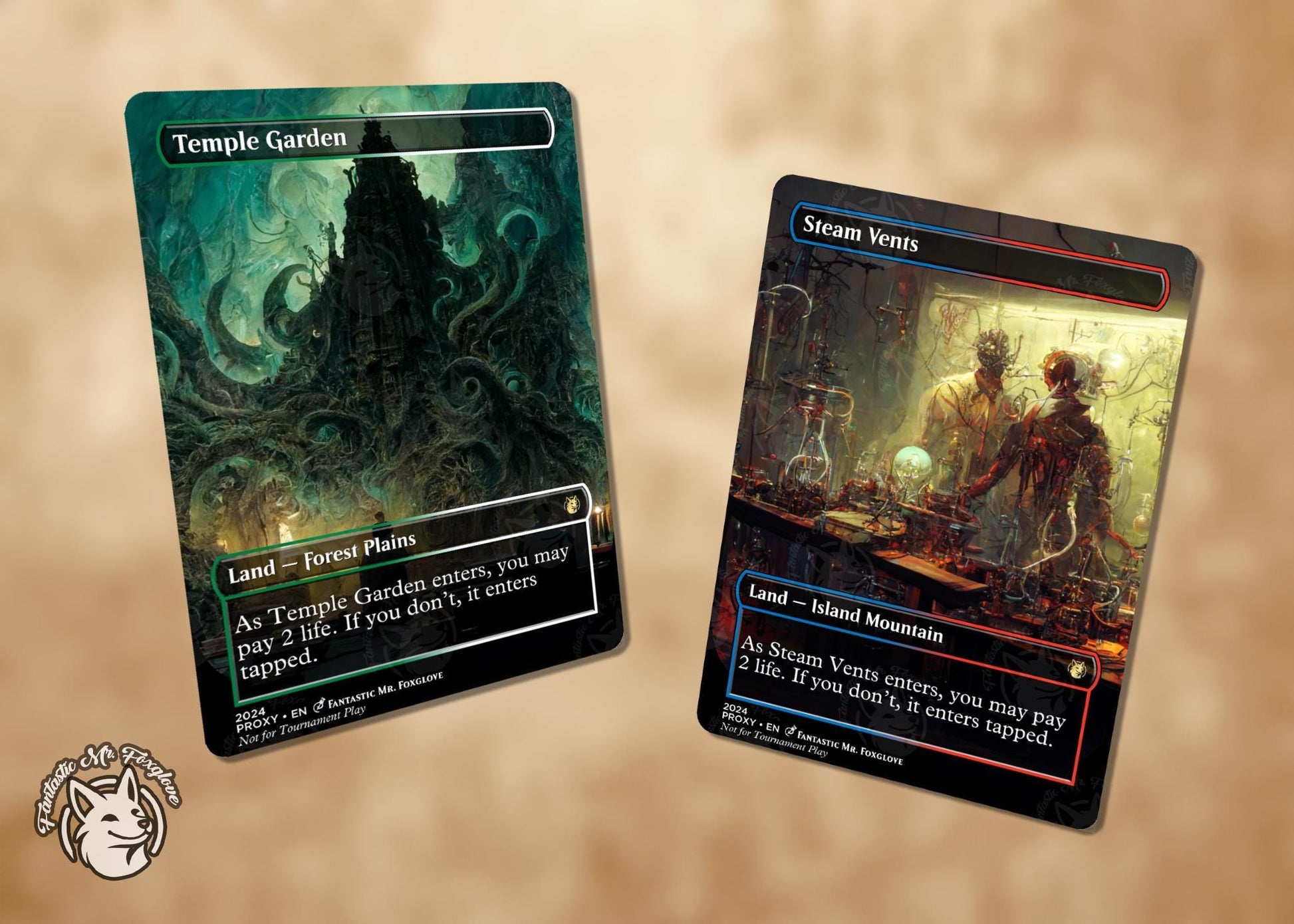 Our proxies are great for casual play like cube draft, but are not official TCG products nor are they legal for sanctioned or tournament play, nor we do have any affiliation with the creators of any official TCGs.