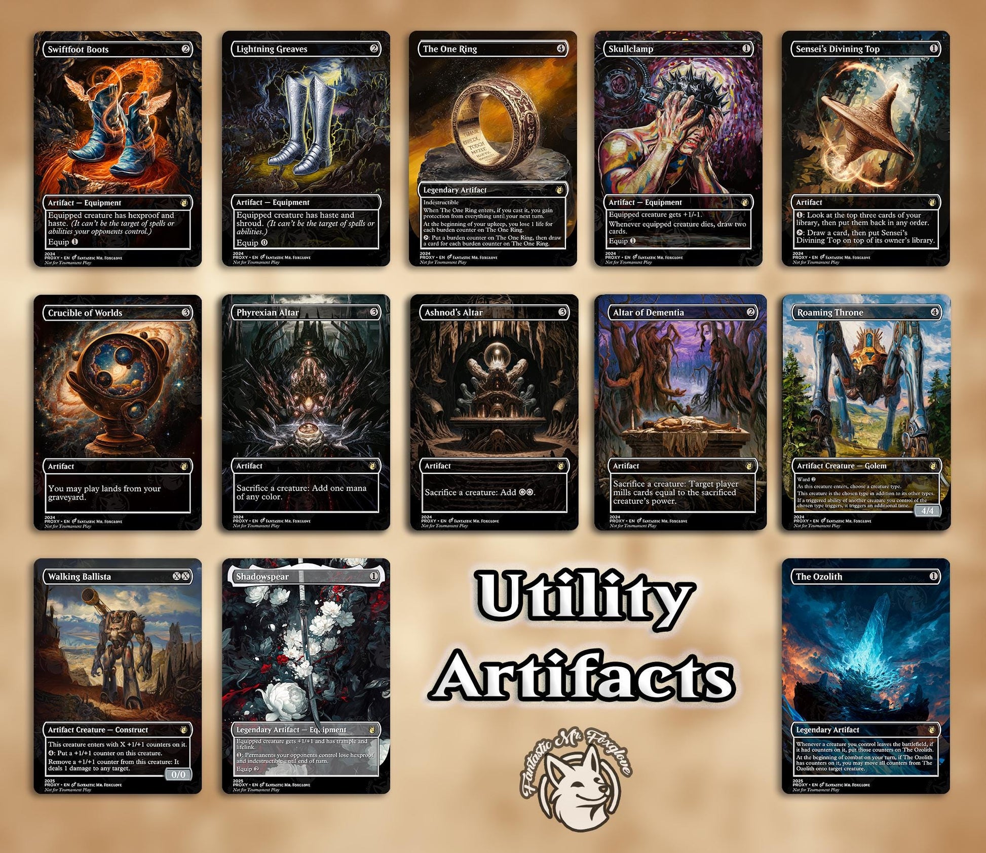 13 Utility Artifact Staples | Proxy Cards — Crucible, Roaming Throne, Greaves, Top, Skullclamp, The Ozolith, Shadowspear, etc