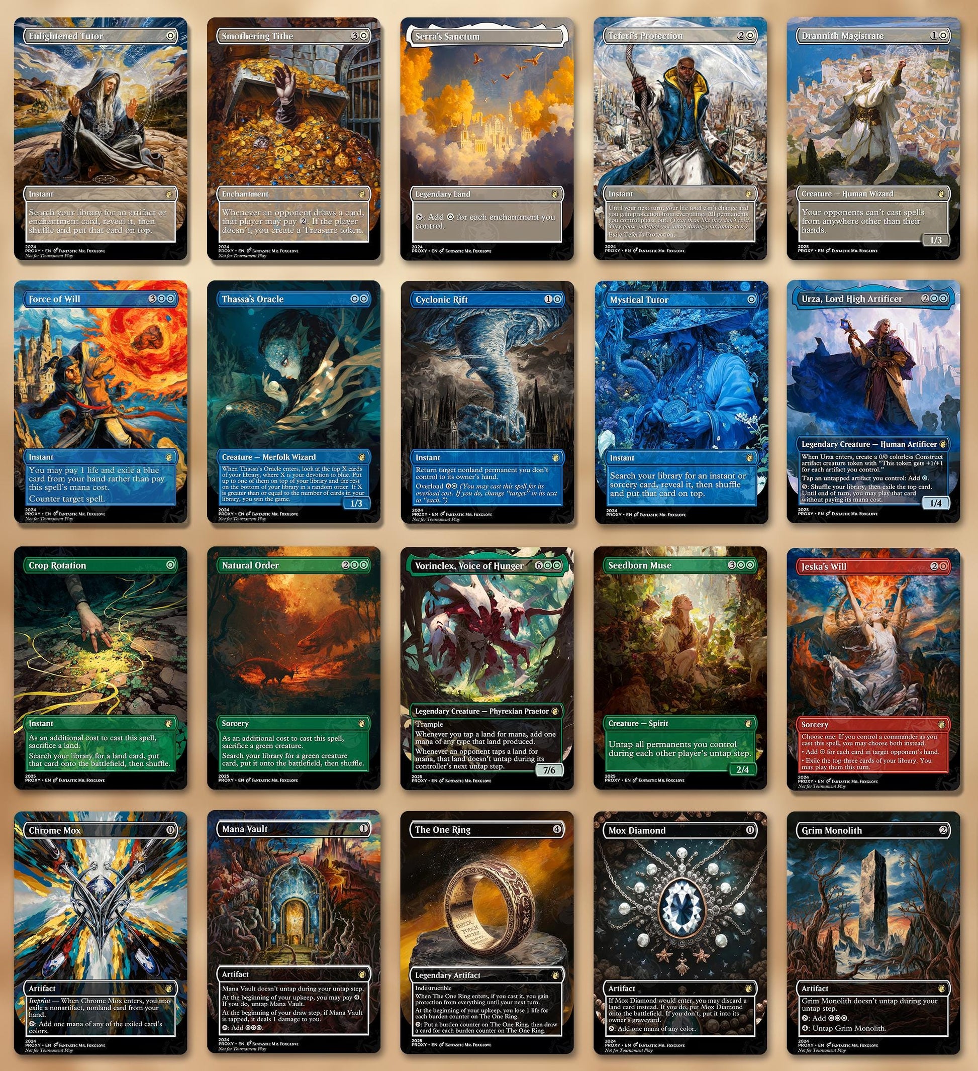 Our proxies are great for casual play like cube draft, but are not official TCG products nor are they legal for sanctioned or tournament play, nor we do have any affiliation with the creators of any official TCGs.