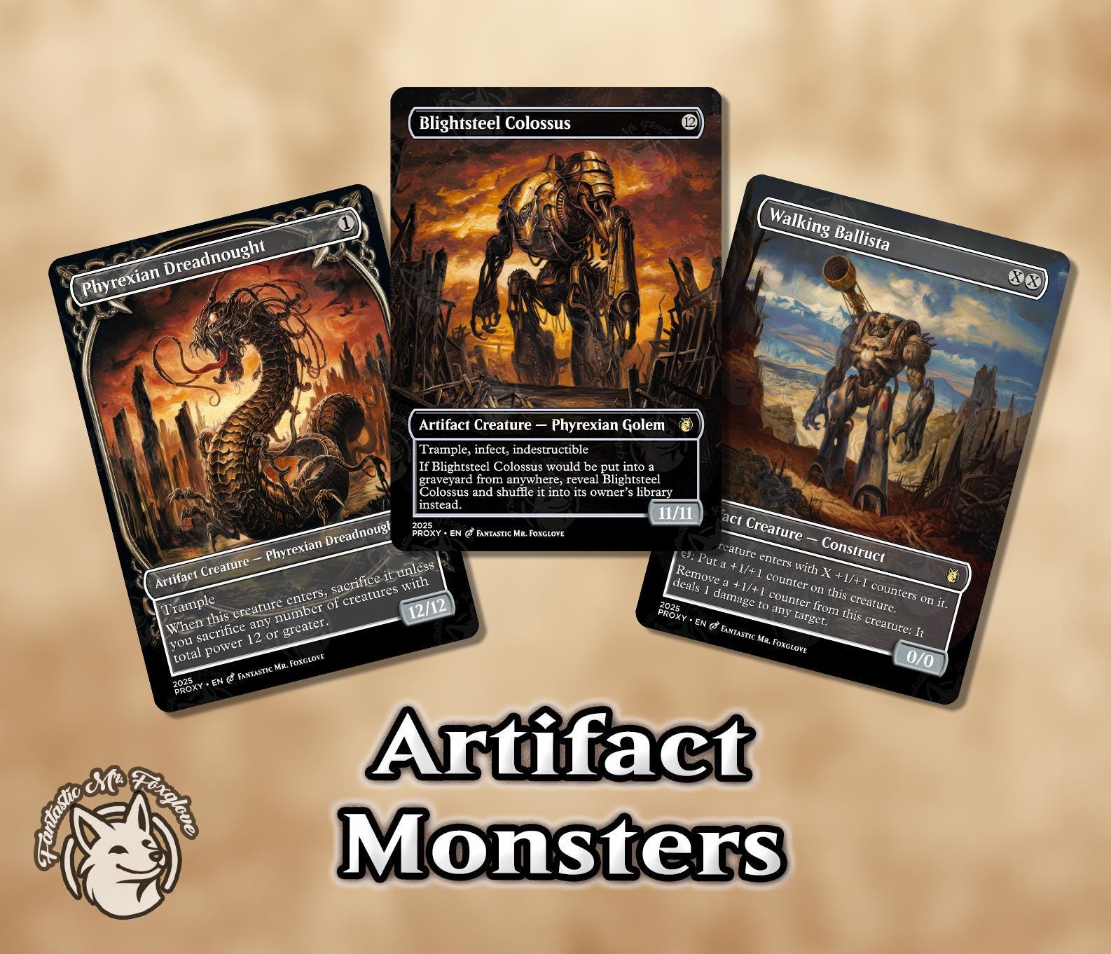 3 Artifact Monsters | Proxy Cards — Phyrexian Dreadnought, Blightsteel Colossus & Walking Ballista