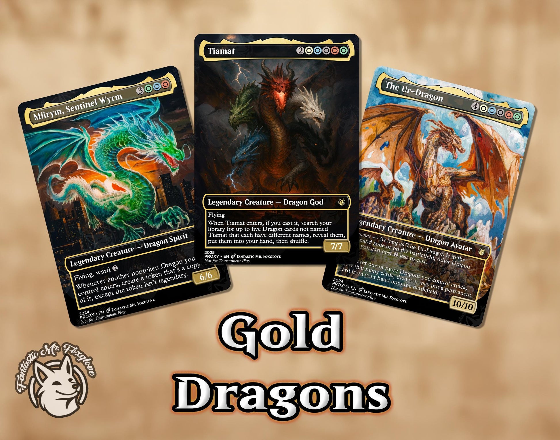 3+ Gold Dragons | Proxy Cards — Up to 10! Tiamat, Miirym, Sentinel Wyrm, The Ur-Dragon, can add Korvold, Ureni, Betor, Teval