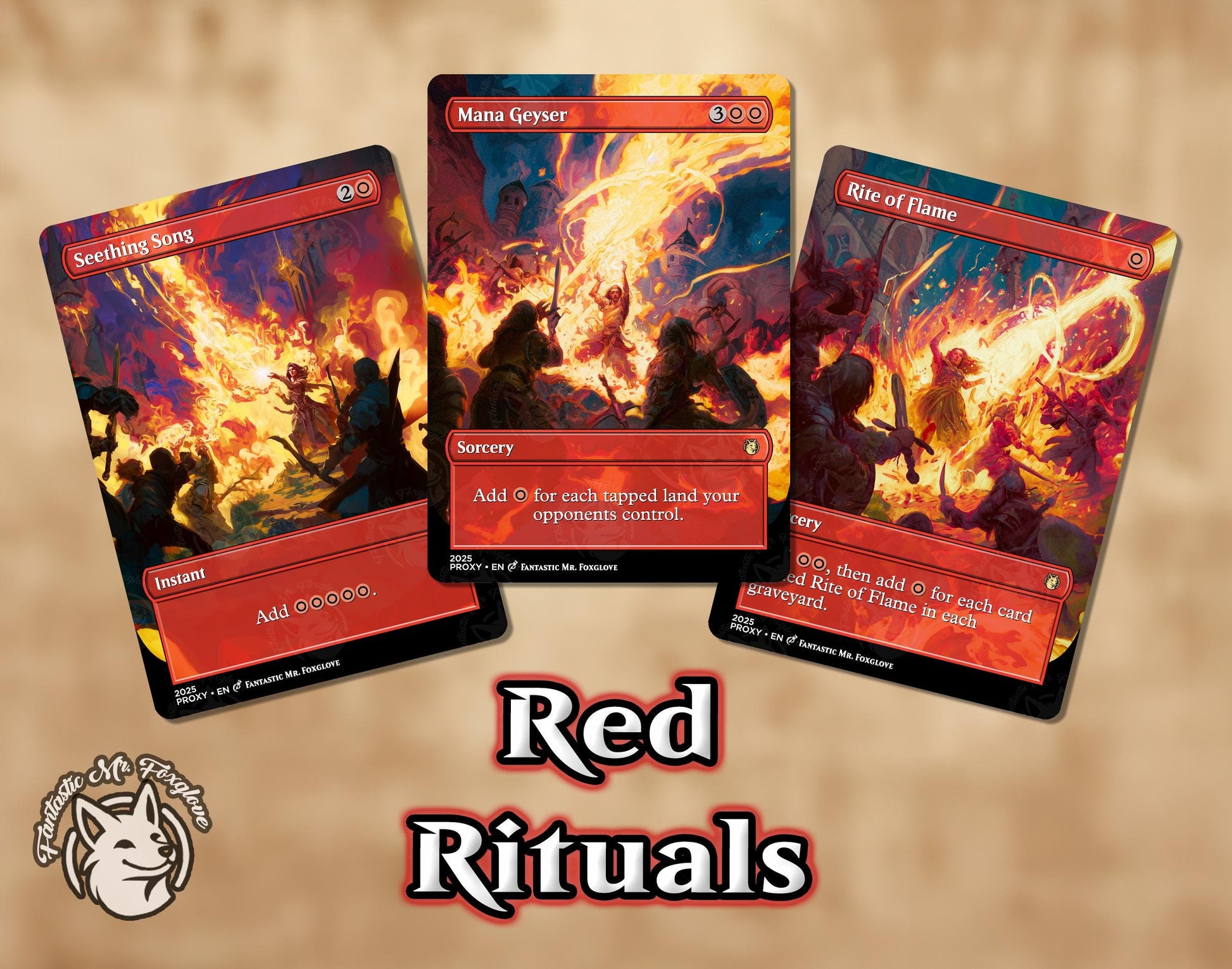 3 Red Rituals | Proxy Cards — Mana Geyser, Seething Song, Rite of Flame