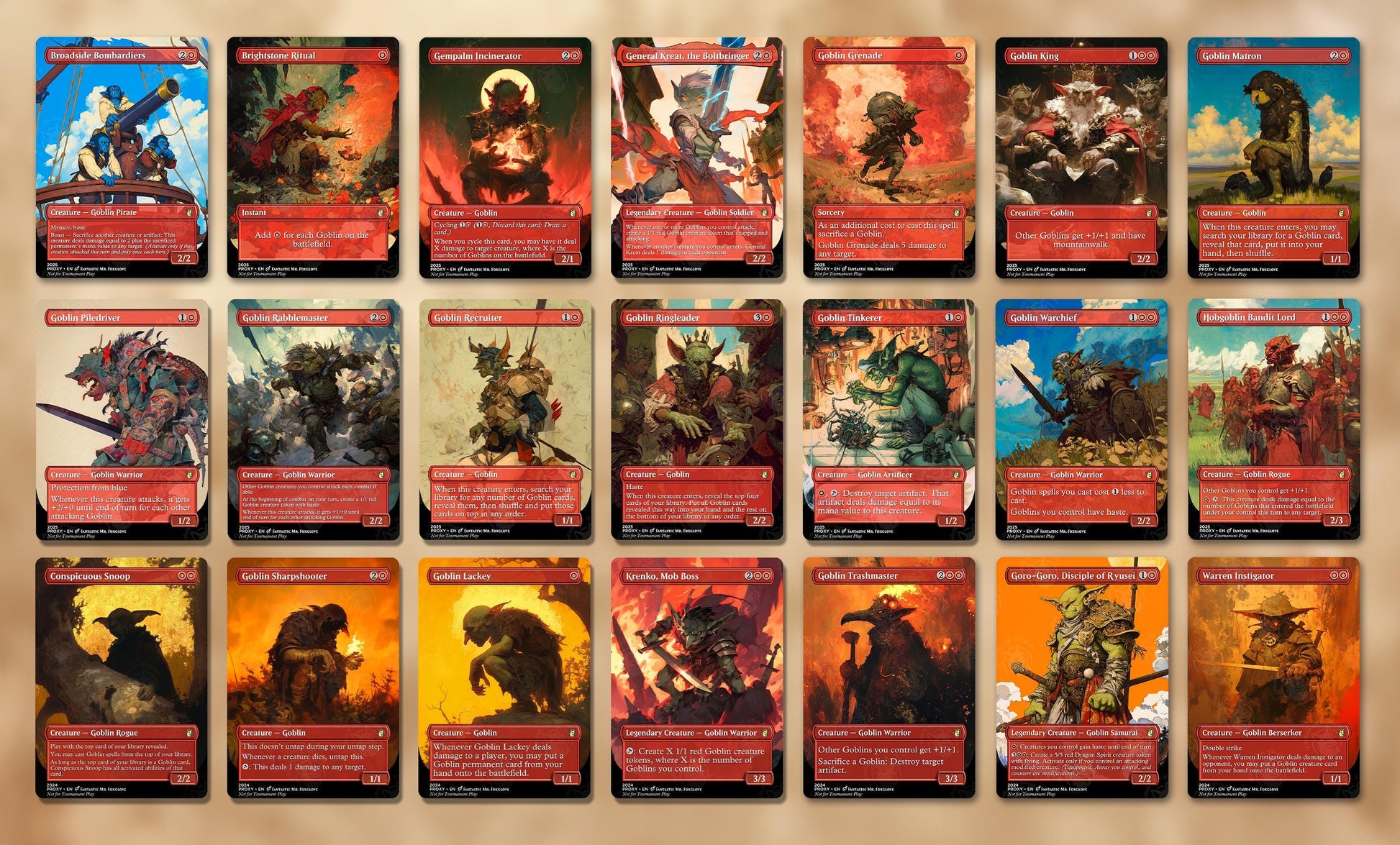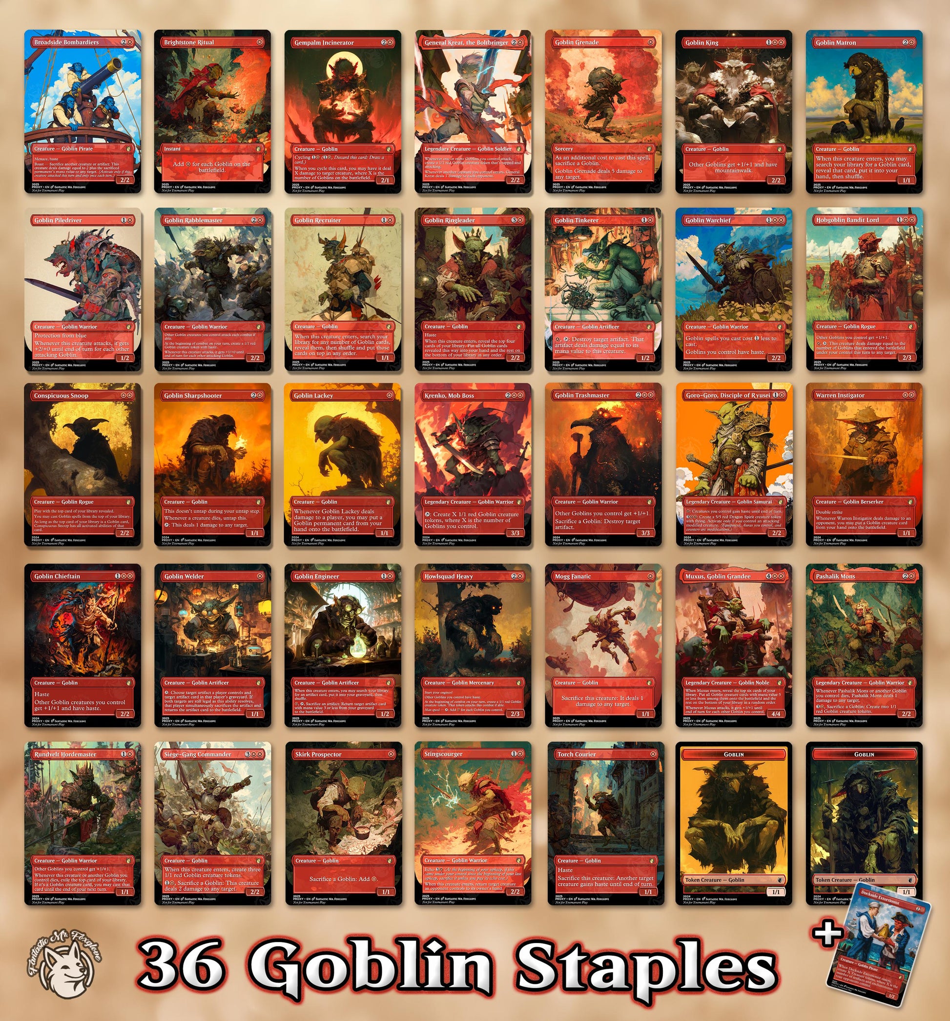 36 Goblin Staples | Proxy Cards — Krenko Mob Boss, Goblin King, Warchief, Muxus, Howlsquad, Rabblemaster, General Kreat, Welder, Dockside
