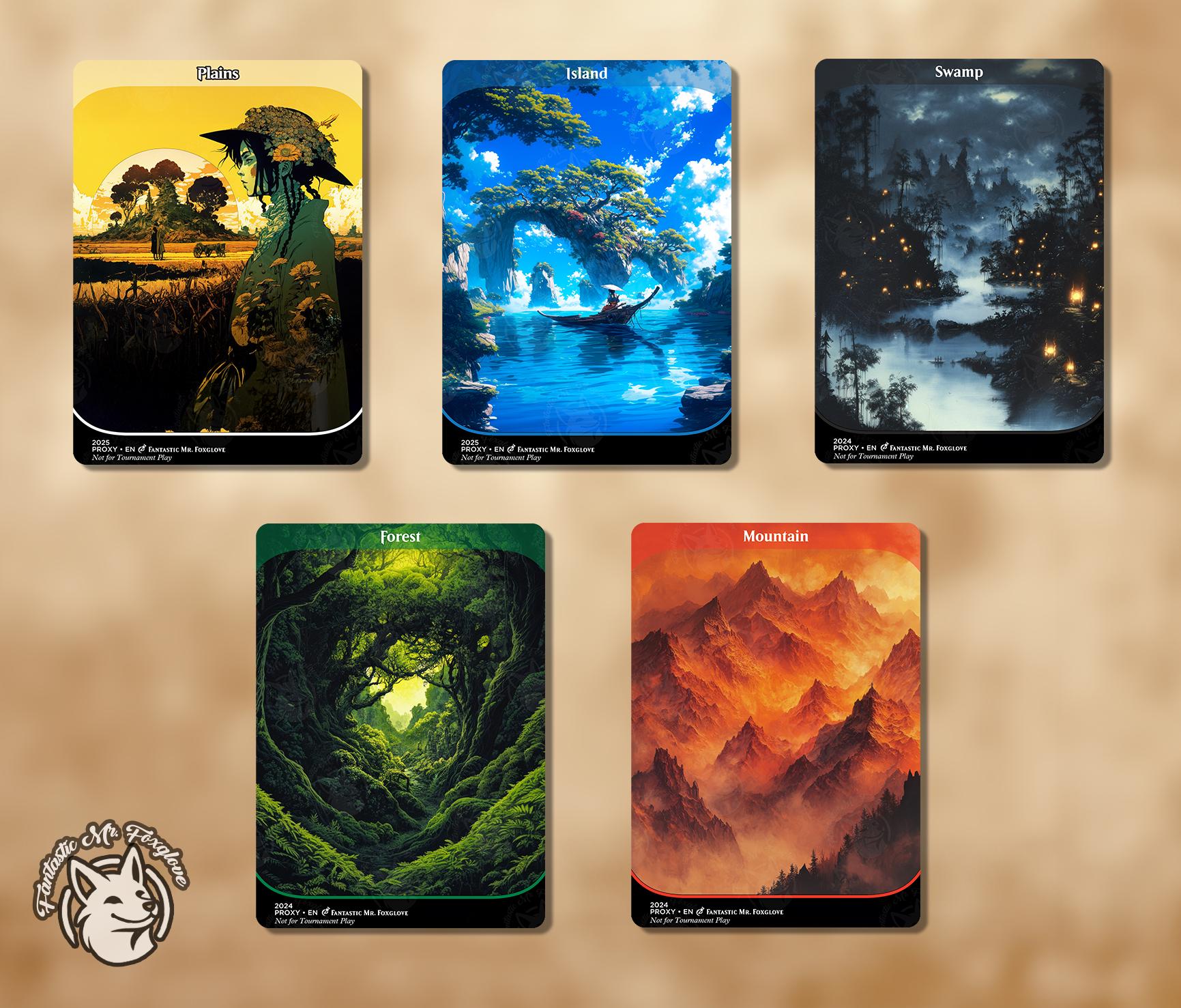 5 Basics Bundle | Basic Land Proxy Cards — Island, Plains, Mountain, Swamp, Forest