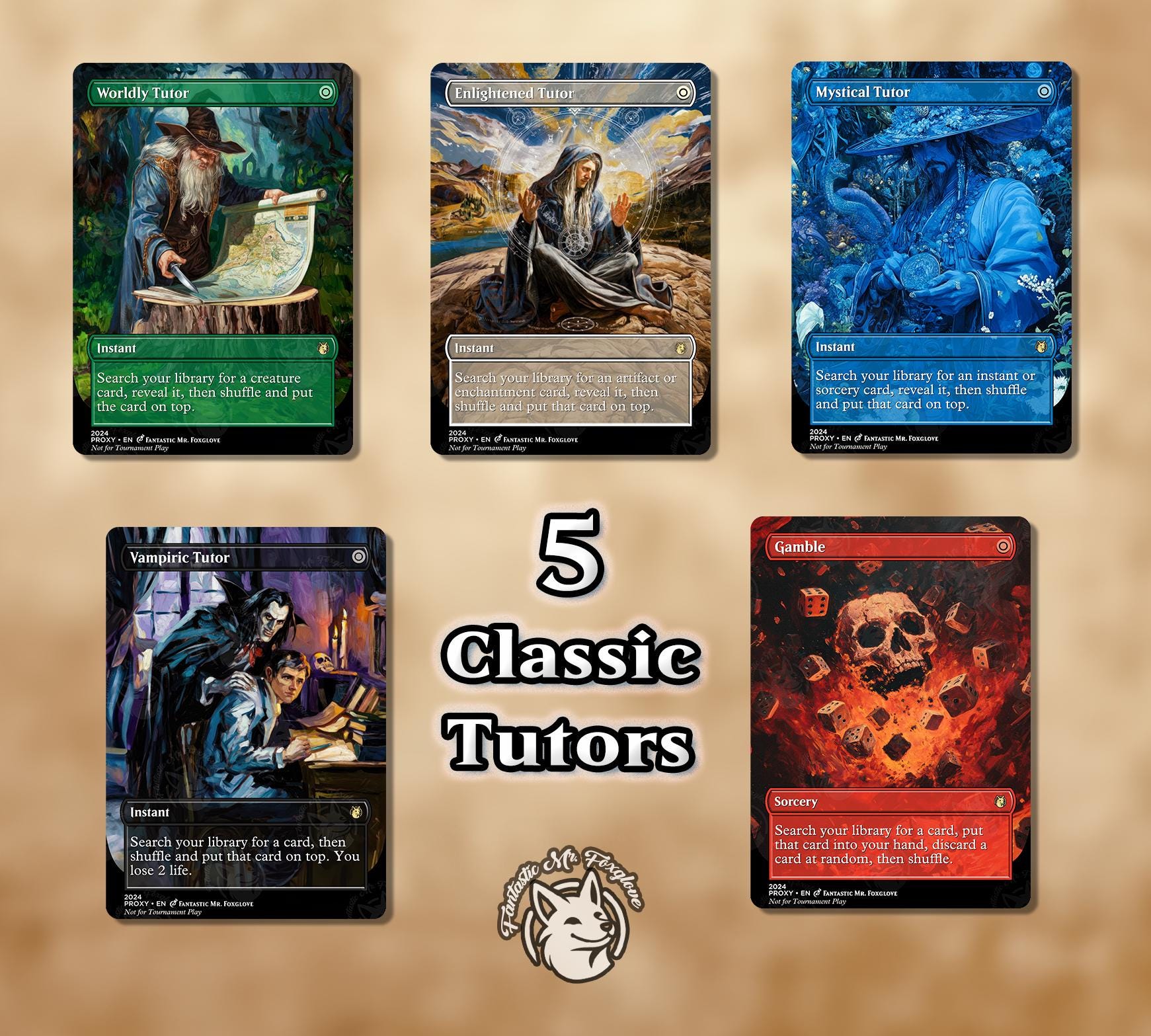 5 Classic Tutors | Proxy Cards — Vampiric, Enlightened, Worldly, Mystical Tutor, Gamble — Mirage Tutors