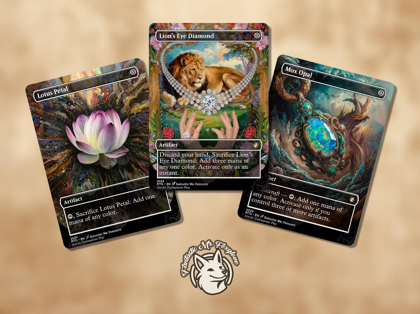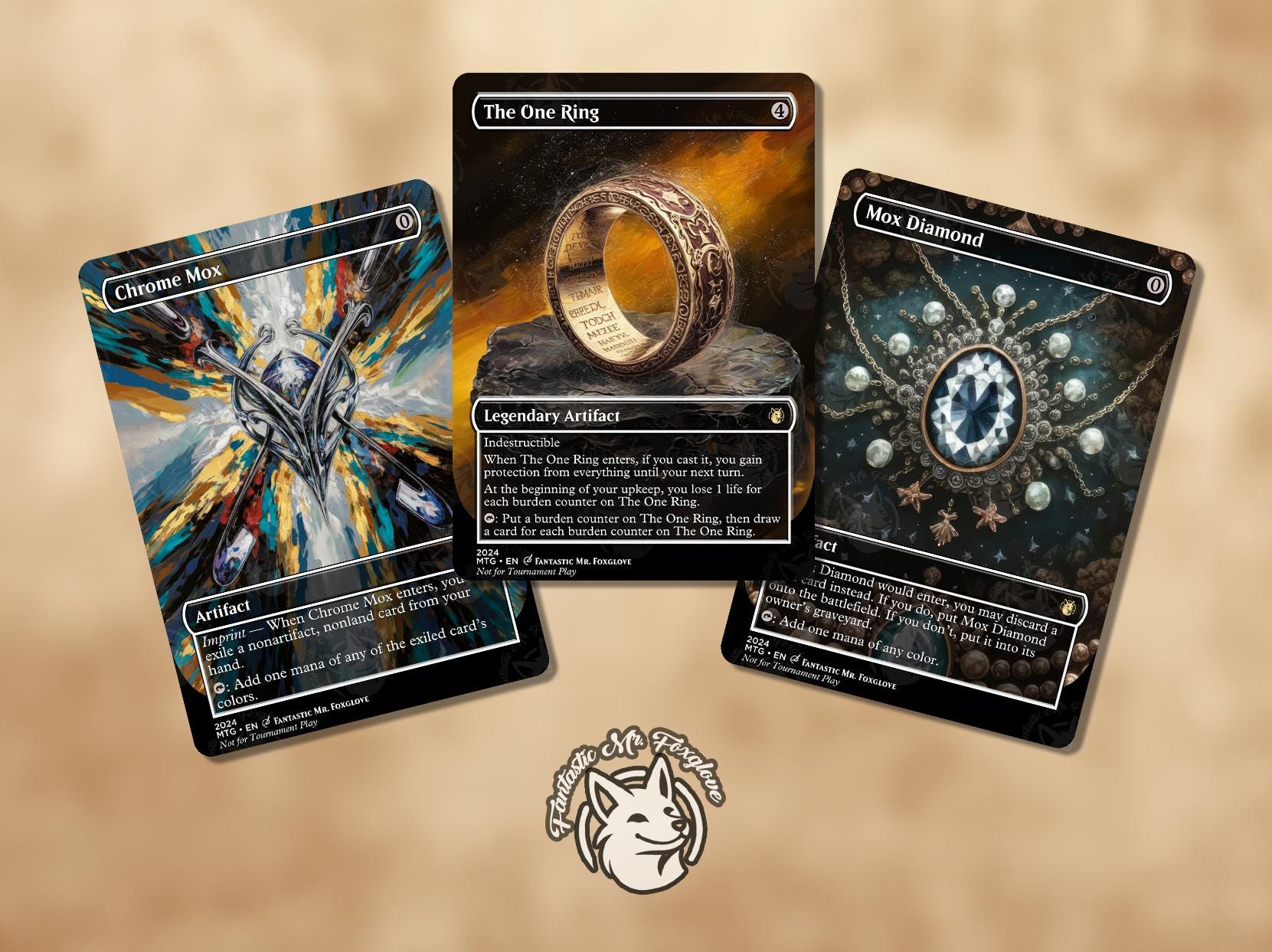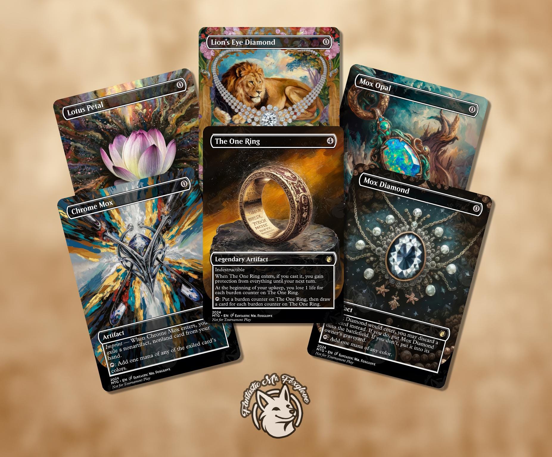 6 Artifact Staples for Legacy | Proxy Cards — The Ring, Chrome Mox, Mox Opal, Mox Diamond, Lotus Petal, Lion's Eye Diamond