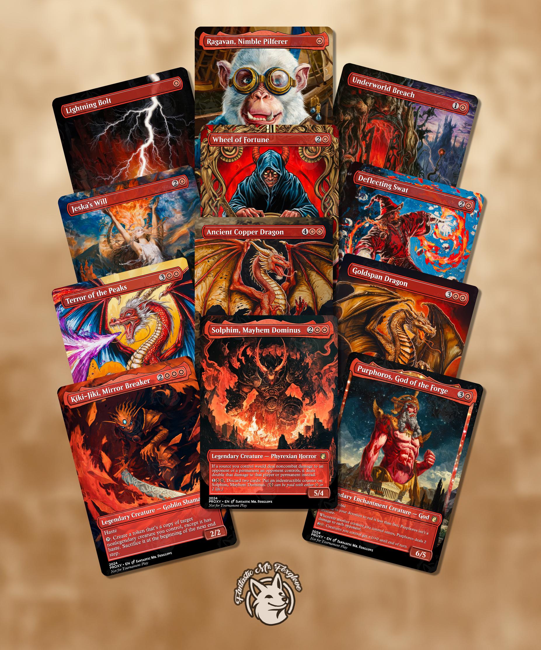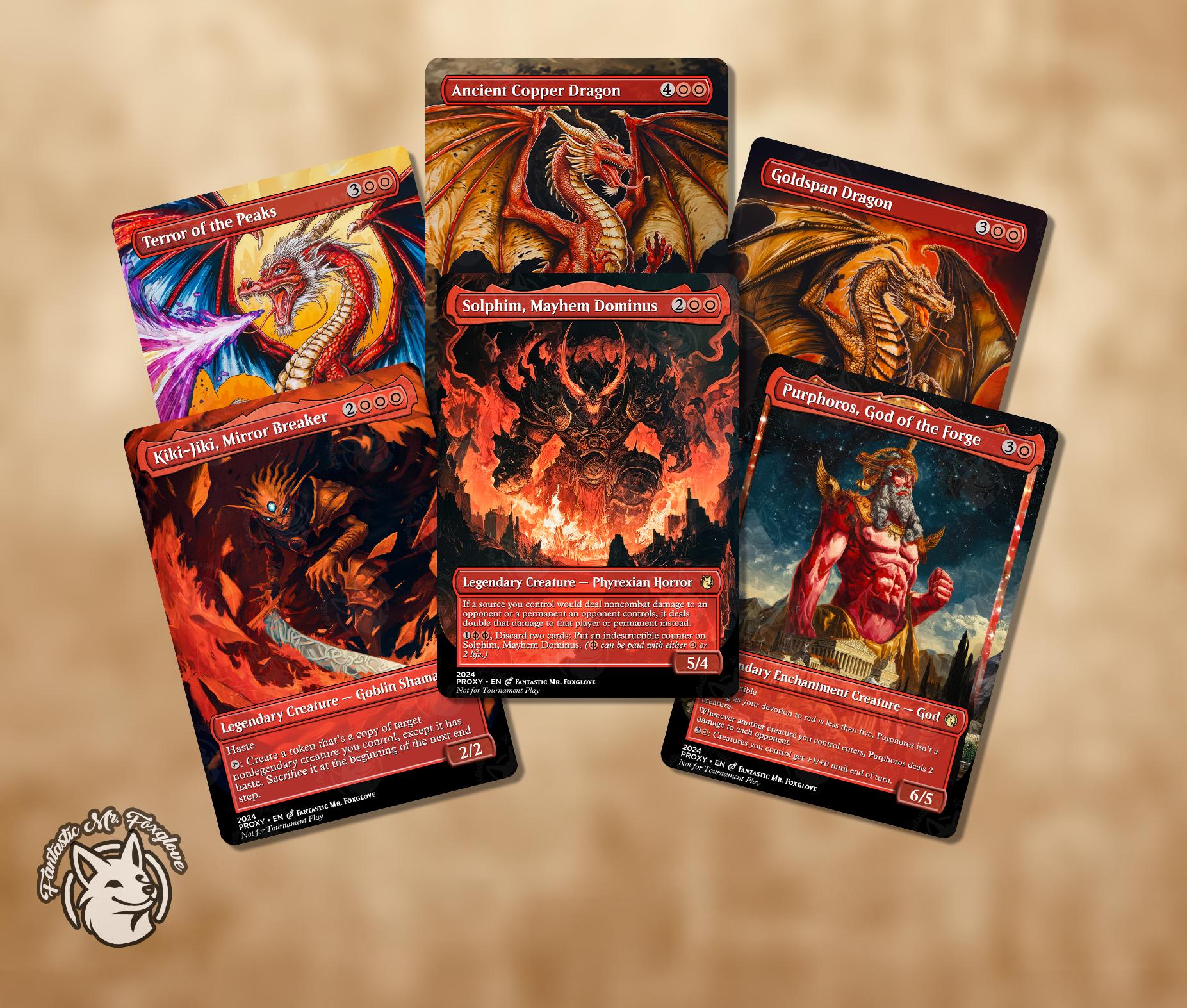 6+ Iconic Red Creatures | Proxy Cards — Ancient Copper Dragon, Terror of the Peaks, Goldspan Dragon, Solphim, Purphoros, Kiki-Jiki