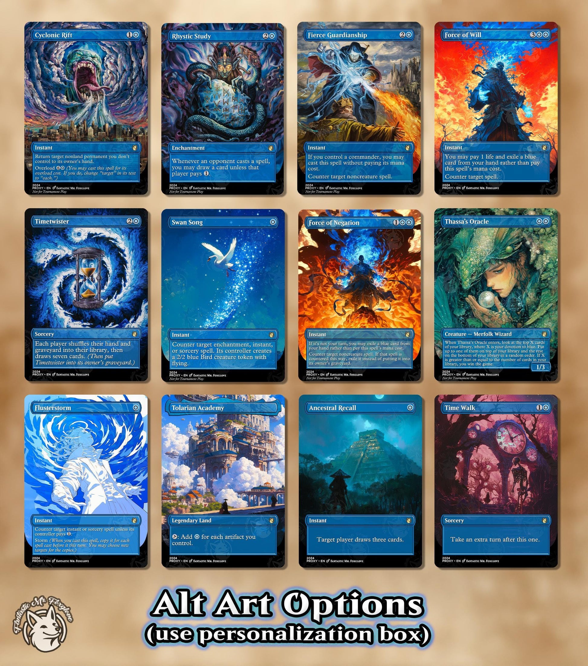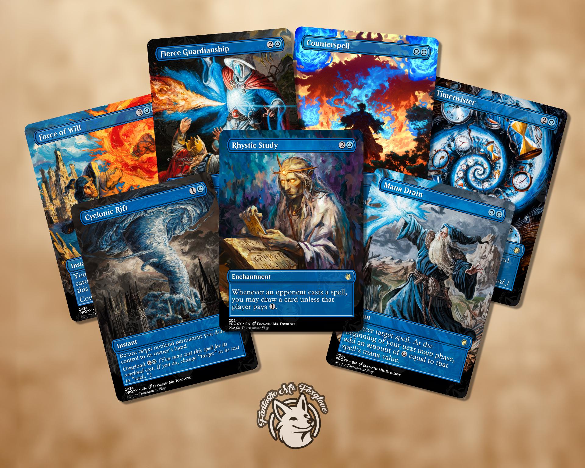7+ Blue Staples | Proxies — Up to 36 Cards! Rhystic Study, Cyclonic Rift, Mana Drain, Force of Will, Fierce, Remora, Oracle, Mystical Tutor