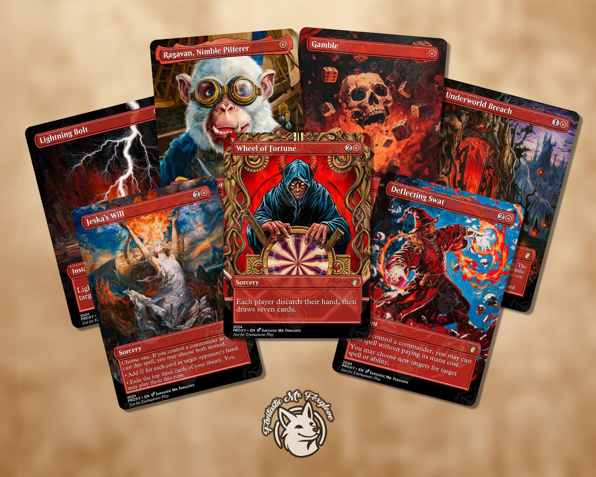7+ Red Staples | Proxies—50 Cards Available! Wheel of Fortune, Deflecting Swat, Jeska's, Ragavan, Bolt, Gamble, Kiki, Anc. Copper Dragon etc