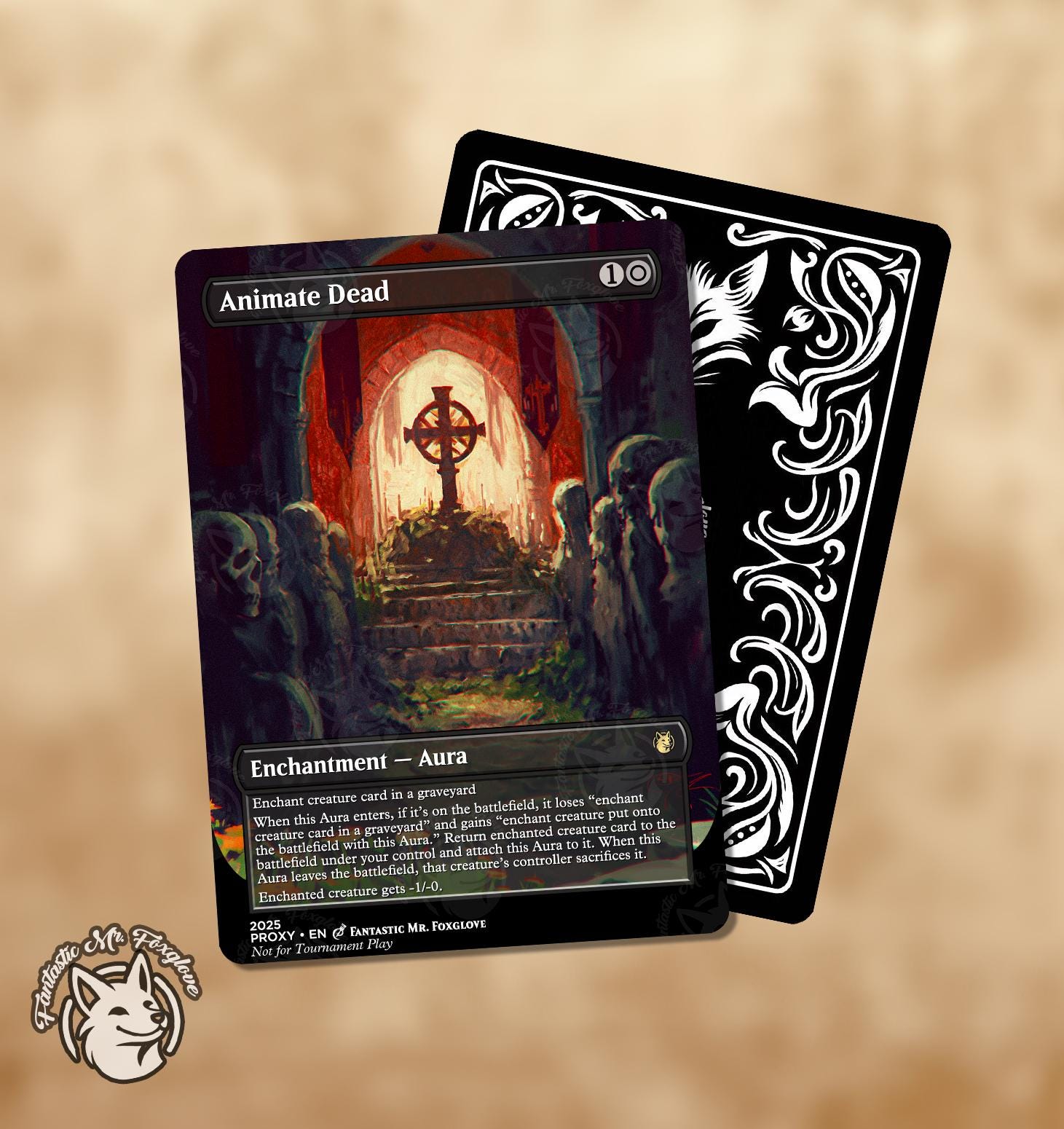 All our artwork is unique. It is carefully crafted and chosen to fit the effects of the card. As a disclosure, our art is created with a workflow that includes but is not limited to the use of AI tools.