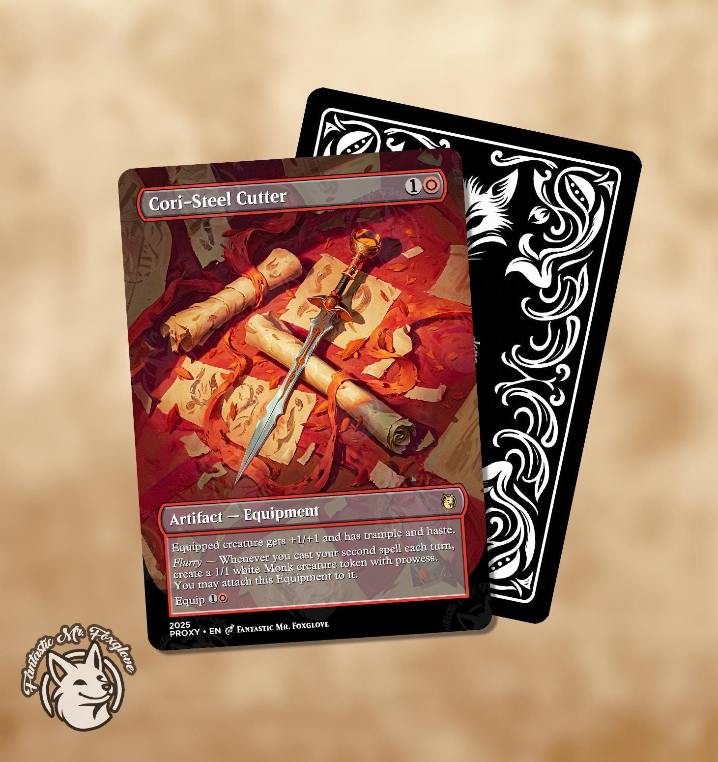 All our artwork is unique. It is carefully crafted and chosen to fit the effects of the card. As a disclosure, our art is created with a workflow that includes but is not limited to the use of AI tools.
