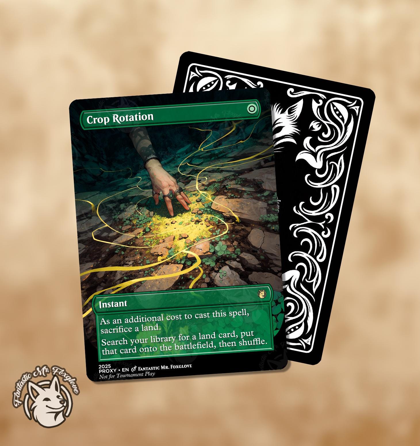 All our artwork is unique. It is carefully crafted and chosen to fit the effects of the card. As a disclosure, our art is created with a workflow that includes but is not limited to the use of AI tools.