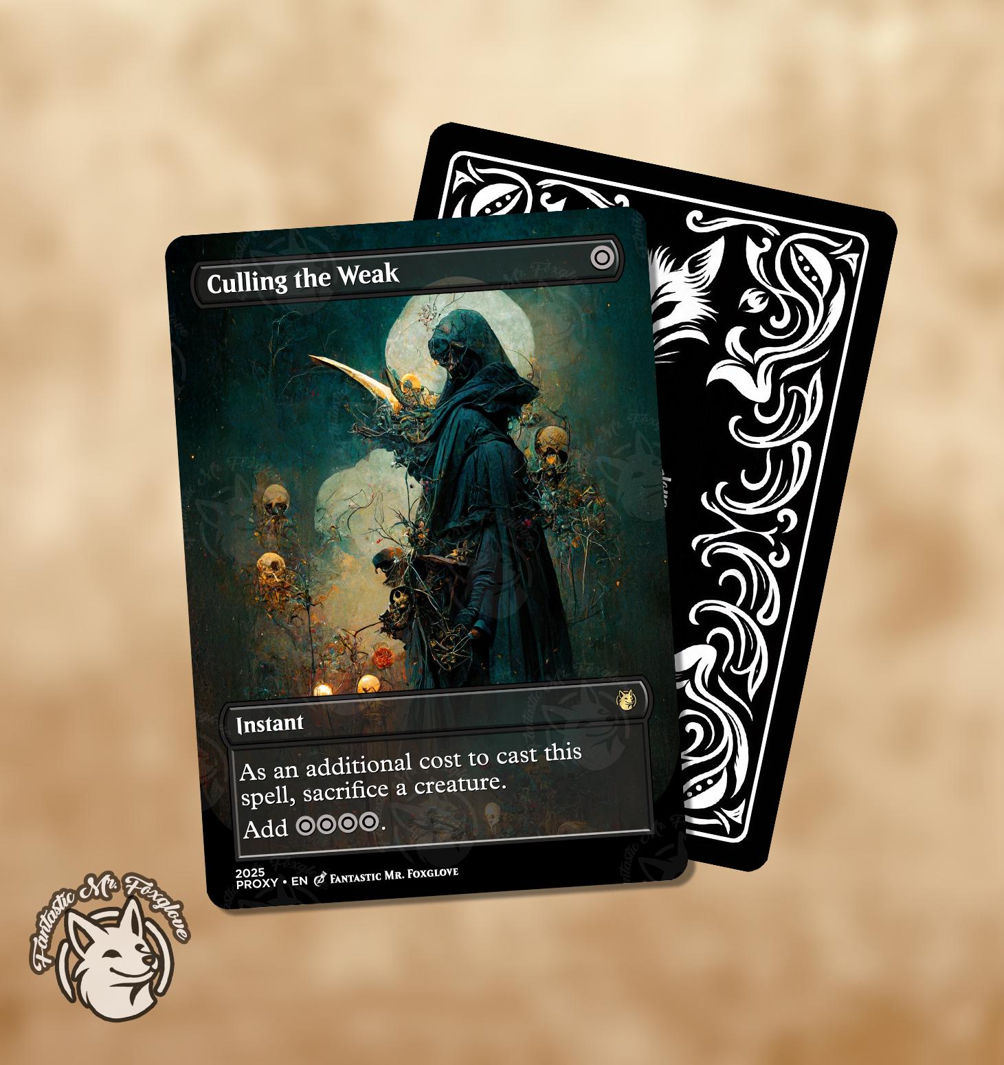 All our artwork is unique. It is carefully crafted and chosen to fit the effects of the card. As a disclosure, our art is created with a workflow that includes but is not limited to the use of AI tools.