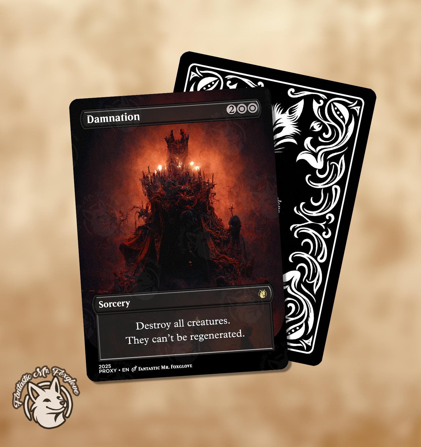 All our artwork is unique. It is carefully crafted and chosen to fit the effects of the card. As a disclosure, our art is created with a workflow that includes but is not limited to the use of AI tools.