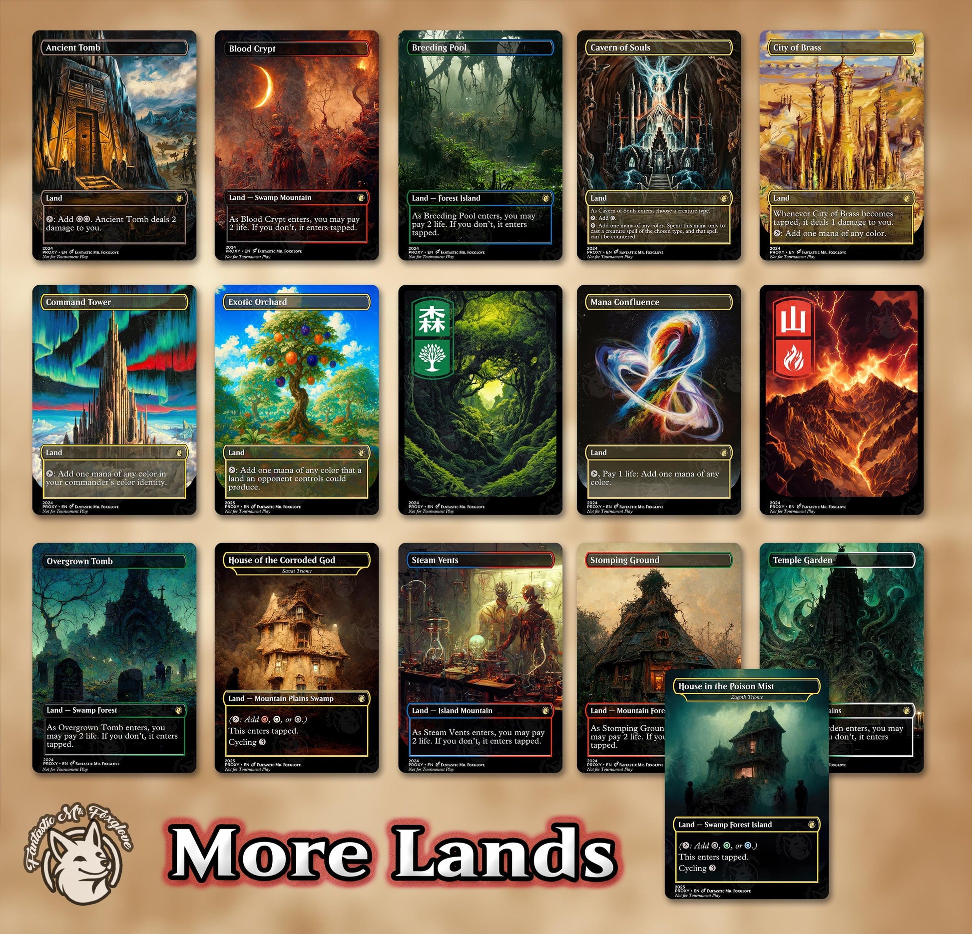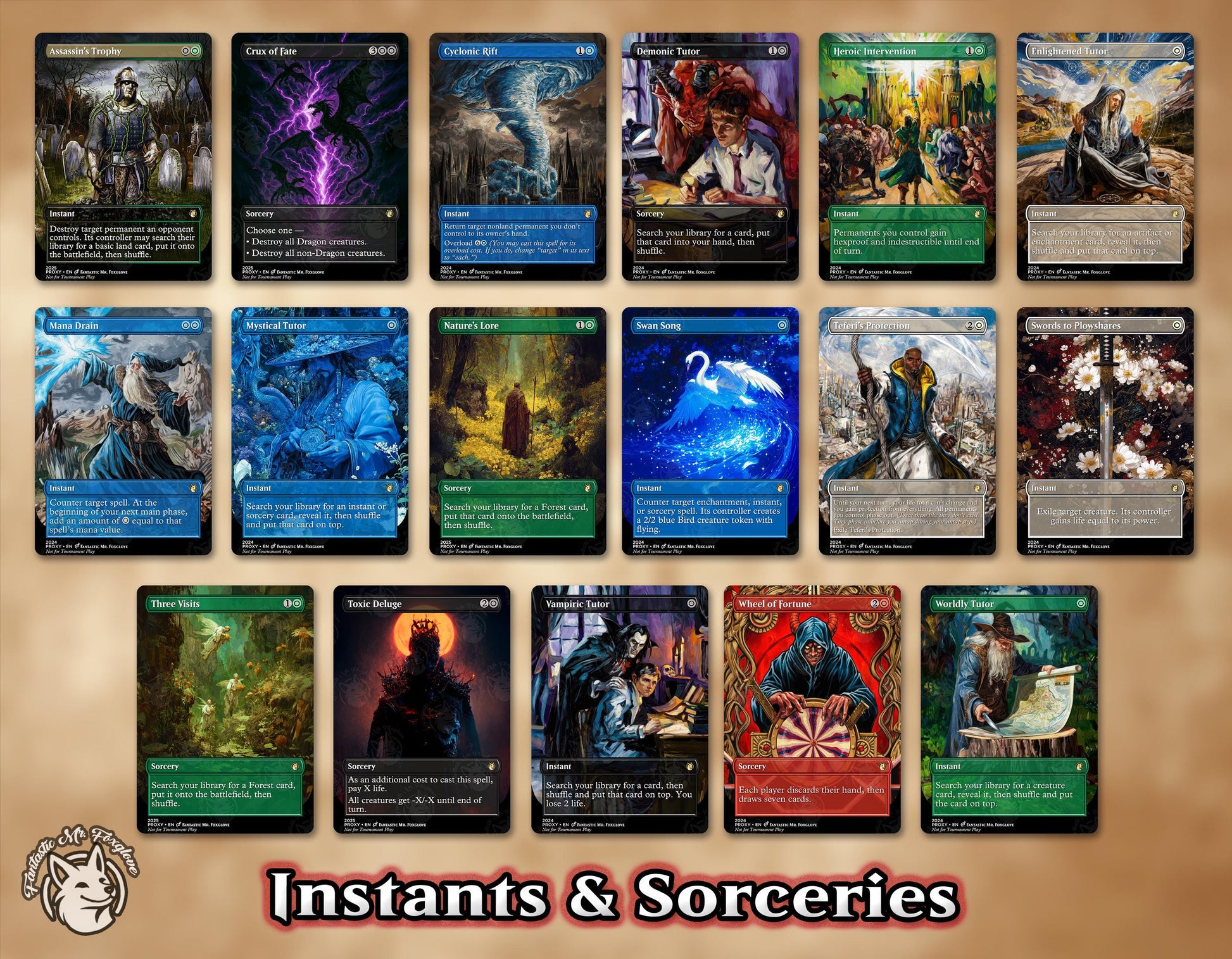 Our proxies are great for casual play, but are not official TCG products nor are they legal for sanctioned or tournament play, nor we do have any affiliation with the creators of any official TCGs.